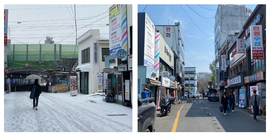周辺には大学もあり、ソウルの主要地域まで30分以内で移動できるという利点から、一人暮らしをする人も多い地域です。おかげで、こちらにいらっしゃると韓国の住宅街も見えます。